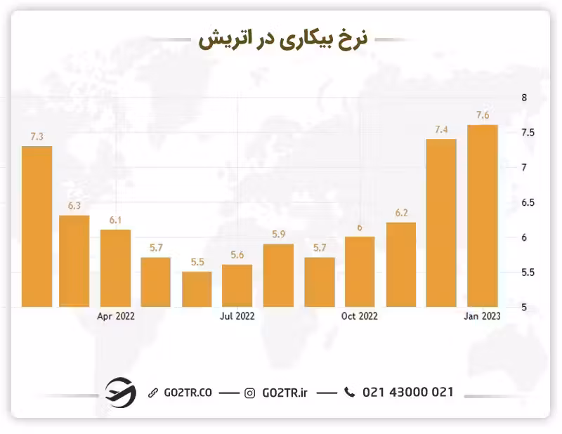 - نرخ بیکاری اتریش: ۷.۶ درصد