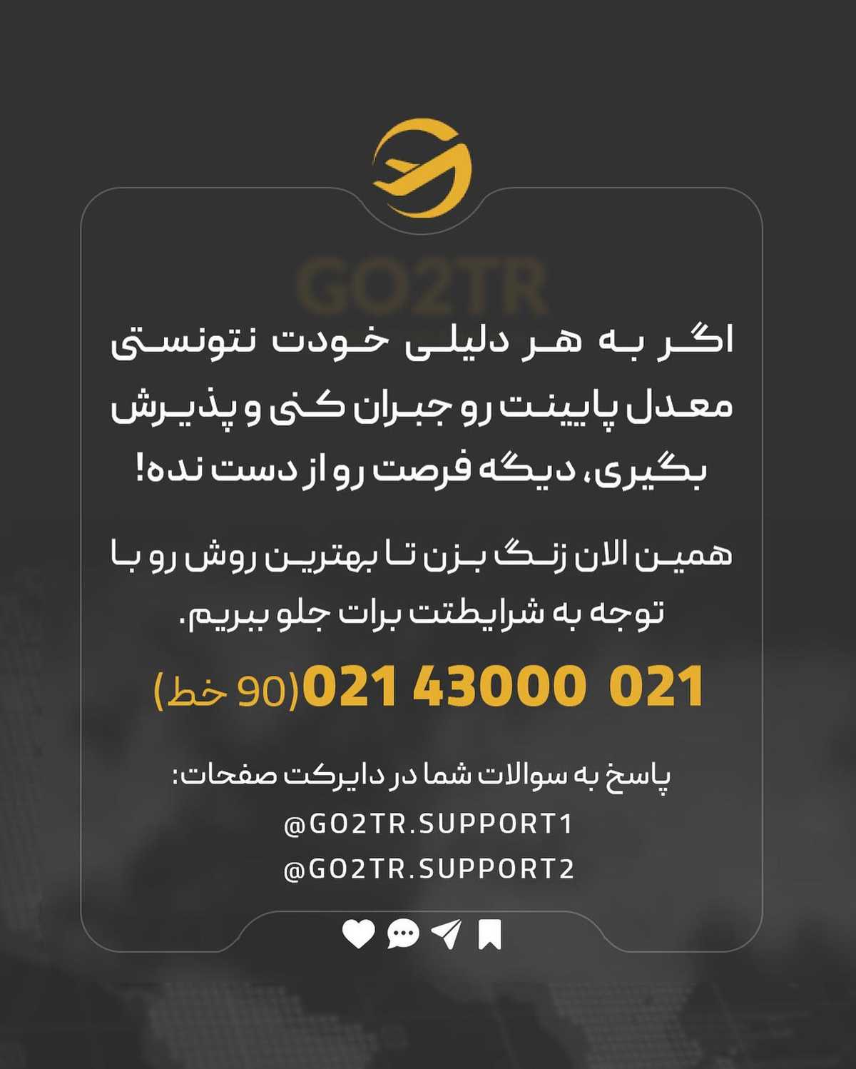 اگر شما نیز قصد مهاجرت به کانادا از روشهای مختلف مانند تحصیلی، سرمایهگذاری، کار در کانادا، دریافت ویزای استارتاپ کانادا و یا دیگر انواع روشهای مهاجرتی به کانادا را دارید، یا حتی درخواست تبدیل ویزای تحصیلی به کاری در خاک کانادا را دارید، میتوانید با کارشناسان ما در موسسه مهاجرتی GO2TR، به رایگان مشاوره تلفنی داشته باشید. همچنین شما میتوانید رزرو وقت مشاوره تخصصی را به صورت آنلاین انجام دهید.