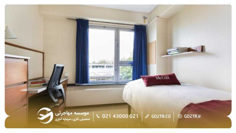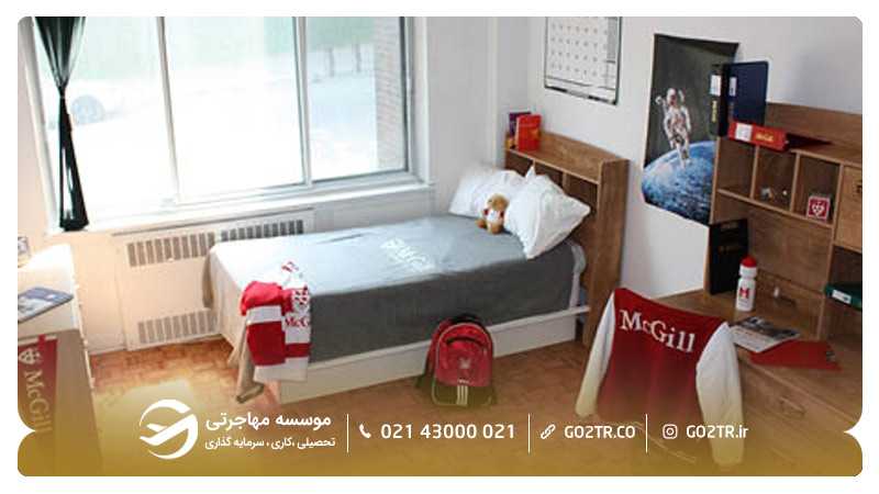 دانشگاه مک گیل در استان مونترال کانادا، یکی از پرطرفدارترین و بهترین دانشگاههای کانادا است. این دانشگاه گزینههای اقامتی مختلفی را برای دانشجویان سال اول کارشناسی و همچنین دانشجویان مقطع کارشناسی در سالهای بالاتر و دانشجویان کارشناسی ارشد ارائه میدهد. استودیو آپارتمان و آپارتمانهای یک خوابه، اتاقهای یکنفره و دونفره با حمامهای مشترک و همچنین اتاقهای تکنفره در خانههای مختلف در سراسر محوطه دانشگاه برای دانشجویان وجود دارد. برخی از خوابگاهها هم برنامه غذایی اجباری دارند. زندگی در خوابگاههای دانشگاهی مک گیل حدود ۴,۸۰۰ تا ۱۴,۳۰۰ دلار کانادا در هر سال تحصیلی هزینه دارد. برای برنامه غذایی هم باید حدود ۵,۴۷۵ دلار کانادا در سال بپردازید.