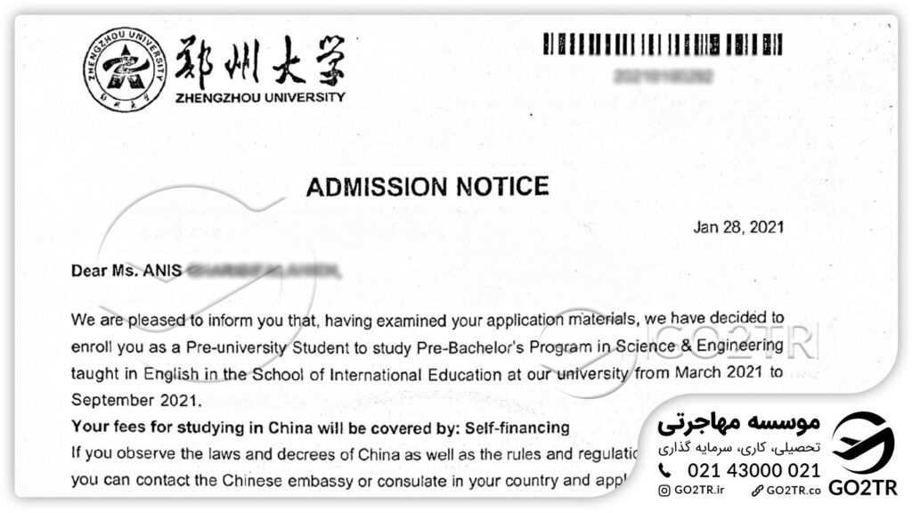 - قبل از درخواست برای ویزای کار چین (ویزای Z)، باید یک نامه رسمی (Notification letter) از مقامات چینی به عنوان مدرکی مبنی بر تایید کار در چین داشته باشید.