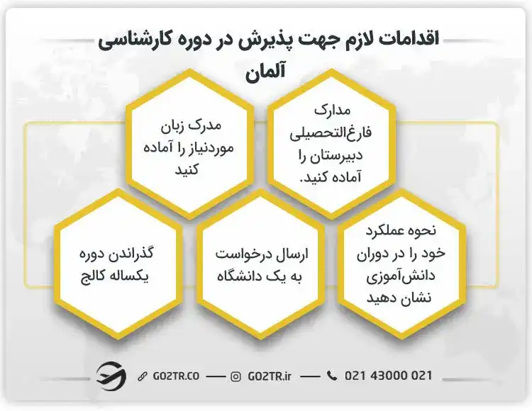 اقدامات لازم جهت پذیرش در دوره کارشناسی آلمان