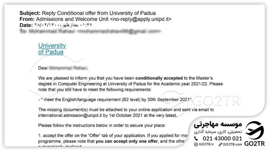 - پروندههای موفق GO2TR در اخذ پذیرش از دانشگاه های برتر ایتالیا