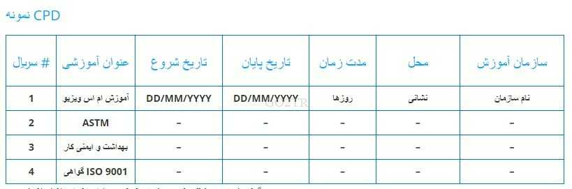 - ذکر دورههای کوتاه مدت، کارگاهها، سمینارها، جلسات فنی و بازرسیها و بحثهایی که در آن شرکت کردهاید.