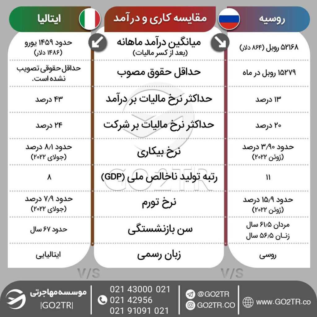- اقتصاد کشور ایتالیا ششمین اقتصاد بزرگ جهان محسوب میشود. بنابراین کار در ایتالیا، کار در یکی از بزرگترین اقتصادهای جهاناست و سبب قوی شدن رزومه کاری فرد متقاضی میشد.