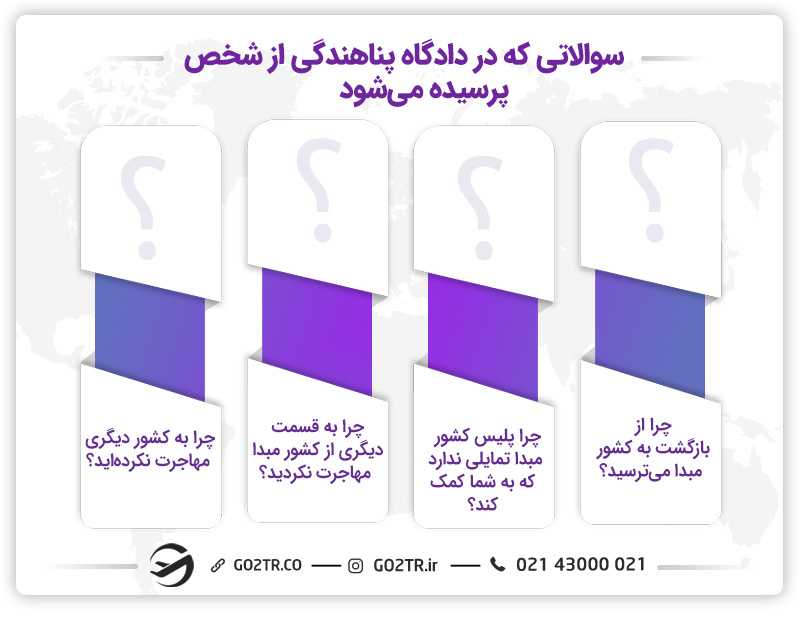 برخلاف تصور عامه، دریافت پناهندگی کانادا حتی برای افرادی که واجد شرایط پناهندگی هستند، با مشکلات و چالشهای فراوانی روبهرو است. همچنین در اکثر مواقع با شکست و ضررهای جبرانناپذیری همراه است. چراکه پس از تقاضای پناهندگی در کانادا، مقامات دولتی با پناهجو مصاحبه میکنند. در این مصاحبه پناهجو باید دلایل خود را برای درخواست پناهندگی در کانادا بیان کند و برای سوالهایی که از وی پرسیده میشود، پاسخ دقیق و مستدل داشته باشد. برخی از پرسشهایی که پناهجو باید پاسخگوی آنها باشد. عبارتاند از: