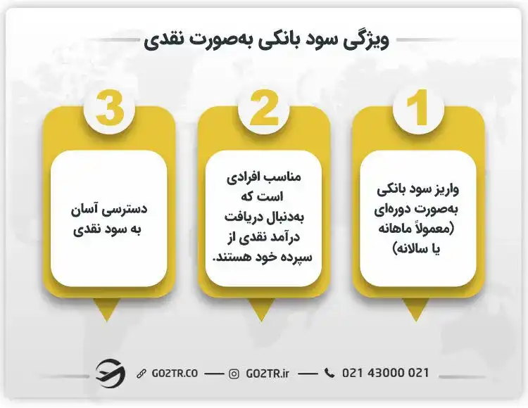 - در سپردههای نقدی، نرخ سود ممکن است کمتر از سپردههای غیر نقدی باشد، اما دسترسی آسان به سود نقدی، جذابیت آن را افزایش میدهد.