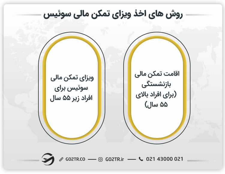 برای اخذ ویزای تمکن مالی سوئیس از طریق روشهای خود حمایتی، دو دسته شرایط اصلی وجود دارد که شامل اقامت تمکن مالی بازنشستگی و اقامت تمکن مالی برای افراد زیر ۵۵ سال میشود. در اینجا، نحوه اخذ اقامت سوئیس با هر کدام از این روشها توضیح داده میشود.