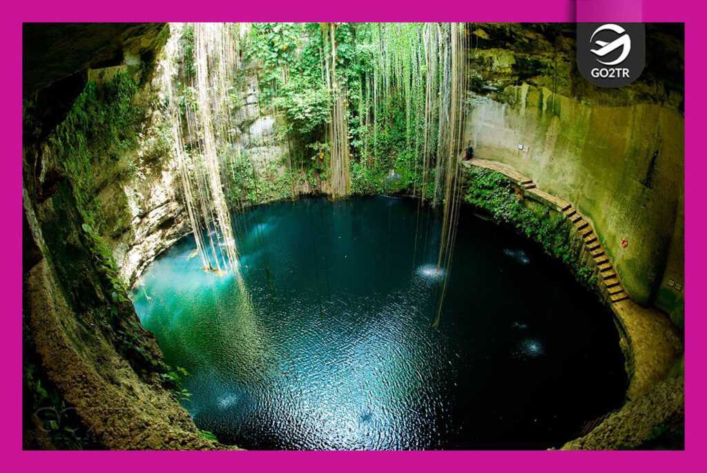 یکی از جاذبههای مکزیک وجود استخرهای طبیعی و گودالهای آب زیرزمینی در دل شبه جزیرهی یوتاکان (Yucatán)، در جنوب شرقی این کشور است. این گودالها بر اثر پدیدهی karst (پدیده ی کارست موجب پیدایش هزاران غار عمودی یا گودال های آب زیرزمینی شده است که بر اثر فروریختن بخشی از سقفهای سنگ آهکی، این گودالها پدیدار شدهاند)، بوجود آمده است. تعداد زیادی از این گودالها در منطقه «چیچن ایتزا»، شهر مقدس مایاها قرار دارد. مایاییها تعدادی از این غارها را مقدس میشمردند و برای انجام اعمال و مناسک مذهبی خود از آنها استفاده میکردند. این گودالهای آب زیرزمینی توسط زائرانی بازدید میشد که اشیا و گاهی اوقات حتی انسانها را هم برای خدای باران قربانی میکردند.