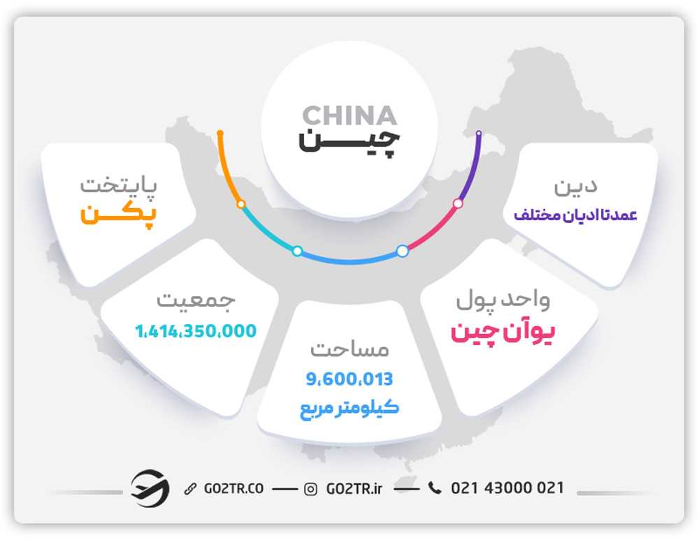 در میان کشورهای بزرگ جهان، چین از نظر مساحت از روسیه و کانادا پیشی گرفته است و تقریباً به اندازه کل اروپا است. مردم چین به زبان چینی (ماندارین) صحبت میکنند و آب و هوای آن از شرایط بسیار خشک و بیابانی در شمال غربی تا بارانهای موسمی استوایی در جنوب شرقی متغیر است.