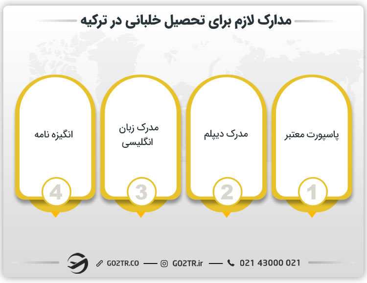 برای تحصیل در ترکیه، نیاز به اخذ ویزای ترکیه دارید. برای اطلاع از شرایط تحصیل و اخذ ویزای این کشور، مقالات مربوطه را مطالعه نمایید.