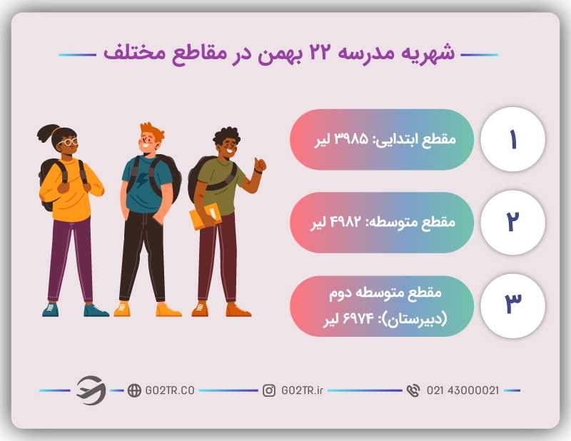 هزینه های تحصیل در مدرسه ۲۲ بهمن به شرح زیر است: