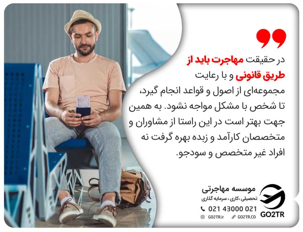 برای یک مهاجرت موفق لازم است از موسسات مهاجرتی قانونی بهره گرفت به همین جهت پیشنهاد می کنیم. مقاله راه های تشخیص موسسات مهاجرتی قانونی از غیرقانونی و جعلی را بشناسید! را مطالعه بفرمایید.