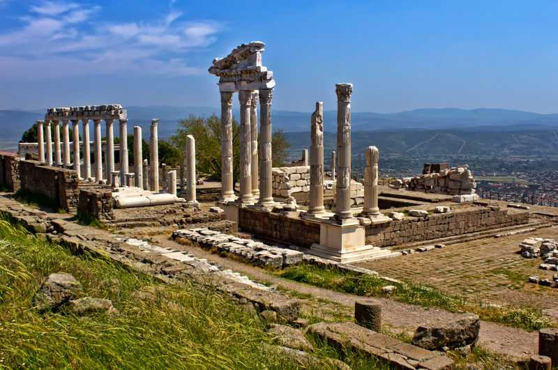 این شهر تاریخی همانند اِفِسوس، از غنیترین و قدیمیترین شهرهای تمدن یونان باستان بهحساب میآید. پرگامون پایتخت امپراتوری پرگامن، یکی از مهمترین منابع الهام برای معماری کلاسیک یونانی و رومی محسوب میشود. ویرانههای پرگامون شامل تعداد زیادی بنا همچون معابد، تئاتر، کتابخانه و… است که اغلب آنها از سنگ ساخته شدهاند. این شهر از لحاظ زیباشناسی و معماری با آکروپولیس در آتن رقابت میکند. از جاذبههای دیدنی این شهر میتوان به موزه باستان شناسی برگما، کتابخانه پرگامون، بنای سلطنتی با ستونهای مرمری تراجانیوم، تماشاخانه کاوه، شفاخانه، محراب زئوس و … اشاره کرد.