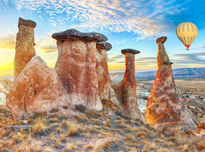 کاپادوکیا یکی از شهرهای عجیب و غریب و پر از شگفتی در ترکیه است. ساکنان این شهر در قدیم برای در امان بودن و مخفی شدن شهرهایی در زیر زمین و در دل سنگها ساختند. صخرههایی با فرمهای دودکش مانند در این شهر وجود دارد که درون آنها خانههای باستانی، کلیساها و هتلهای متعددی ساخته شده است و حال و هوای کاپادوکیا را شبیه به شهرهای افسانهای کرده اند. عجایب این شهر به حدی زیاد است که آن را به عنوان یکی از عجایب هفتگانه ترکیه میشناسند. همچنین به دلیل طبیعت زیبا، زمینهای صخرهای با اشکال غیرمعمول و شگفتانگیز، فرهنگ منحصربهفرد و تاریخ پرفرازونشیبش، یکی از پایتختهای گردشگری ترکیه به شمار میرود. شهرهای زیرزمینیش همیشه باعث حیرت جهانیان شده است. درینکویو، بزرگترین شهر زیرزمینی حفاری شده در کاپادوکیه بهحساب میآید. کلیسای توکالی، شهر زیرزمینی کایمالکی، دره ایهلارا، موزه فضای باز زلو، دره راهبان، شهر زیرزمینی اوزکونک، دره دورنت و … از شگفتیهای این شهر حیرتانگیز بهحساب میآید.