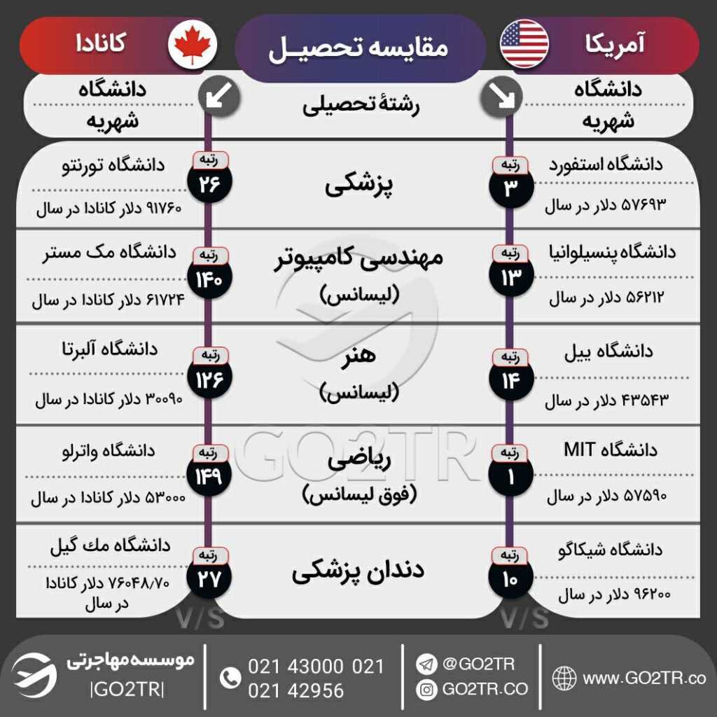 - از میان آمریکا و کانادا کدام یک گزینه مناسبی برای تحصیل است؟