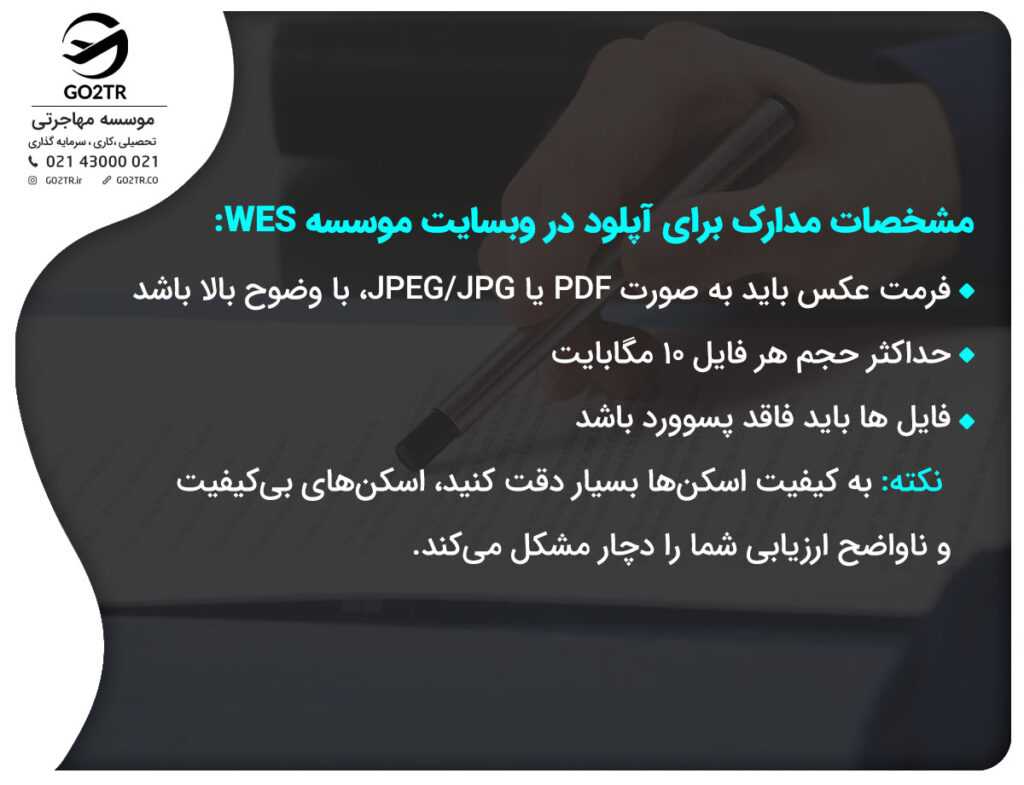مدارک مورد نیاز برای ثبت نام و ارزیابی در WES
