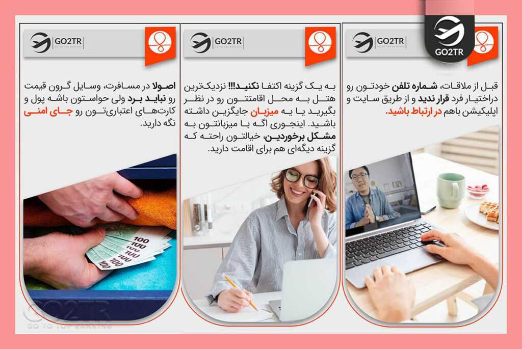 | امکان سرقت و دزدی وسایل | برای یافتن یک میزبان مناسب باید جست و جو کنید و با افراد مختلف در تماس باشید تا فردی مورد اطمینان و مناسب را برای میزبانی انتخاب کنید. |