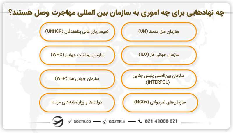 چه نهادهایی برای چه اموری به سازمان بین المللی مهاجرت وصل هستند؟