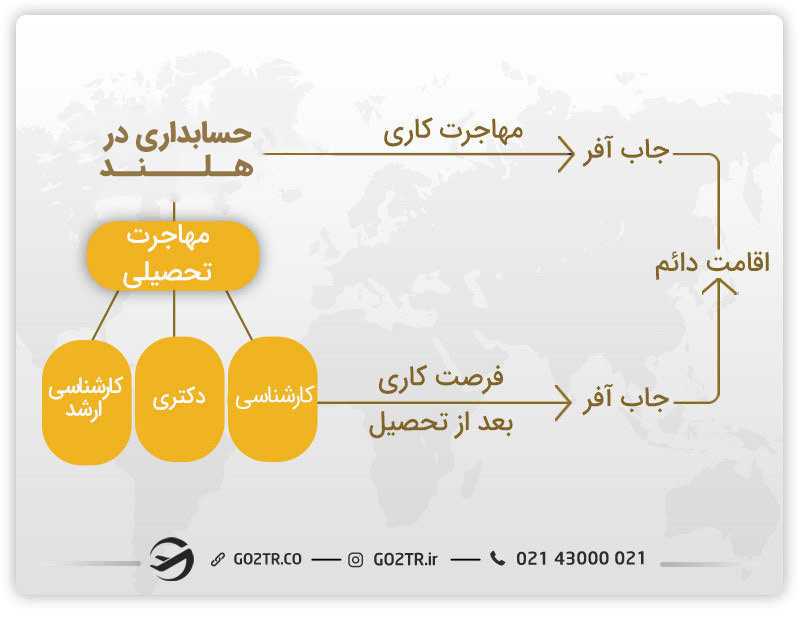 اگر شما به عنوان یک حسابدار یا فردی که به تحصیل در این رشته علاقه دارد، قصد دارید در کشور هلند به تحصیل، کار و زندگی بپردازید، میتوانید با متخصصین باتجربه ما در موسسه مهاجرتی گوتوتیآر به رایگان تماس بگیرید یا وقت مشاوره تخصصی رزرو کنید و با دریافت راهکارهای تخصصی با توجه به شرایط فردی خود، بهترین تصمیم را برای آینده بگیرید.