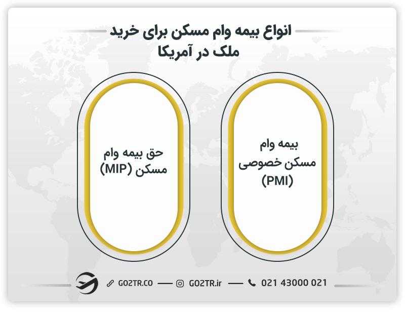 دو نوع بیمه وام مسکن برای خرید ملک در آمریکا وجود دارد: بیمه وام مسکن خصوصی (PMI) و حق بیمه وام مسکن (MIP).