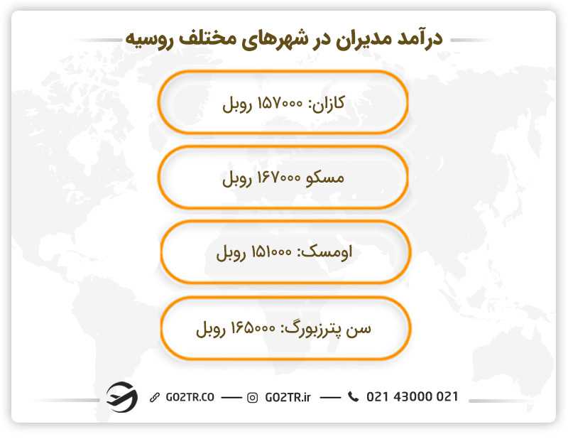 - متوسط درآمد ماهانه مدیریت در روسیه: ۱,۷۱۶ دلار
