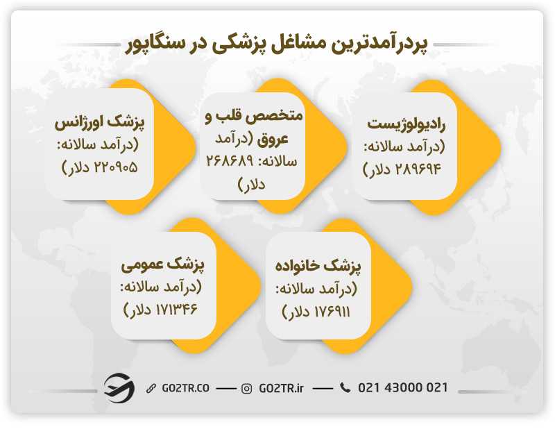 | متخصص اطفال (Pediatrician) | ۲۱۹,۱۳۳ دلار سنگاپور | ۱۶۲,۴۴۸ دلار |