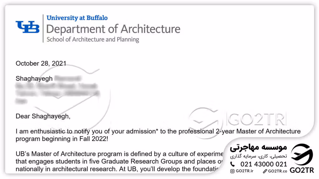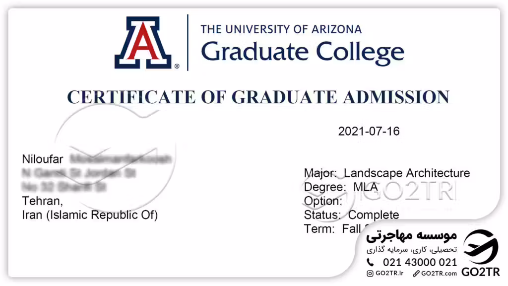 دو نمونه از پروندههای موفق GO2TR در زمینه اخذ پذیرش در رشته معماری: