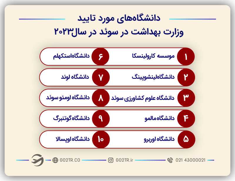 دانشگاههای مورد تأیید وزارت بهداشت در سوئد ۲۰۲۵-۲۰۲۴
