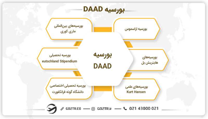 - بورسیه DAAD: بورسیه تحصیلی در مقطع لیسانس و فوق و فوق لیسانس که توسط سرویس تبادل اکادمیک آلمان اراِئه میشود.