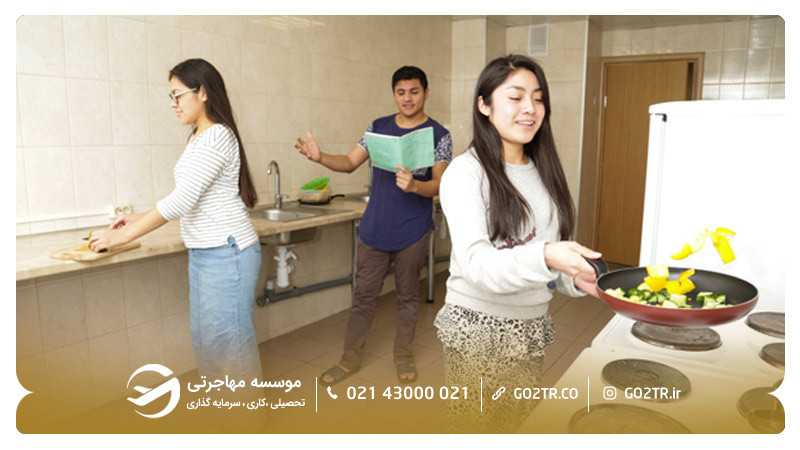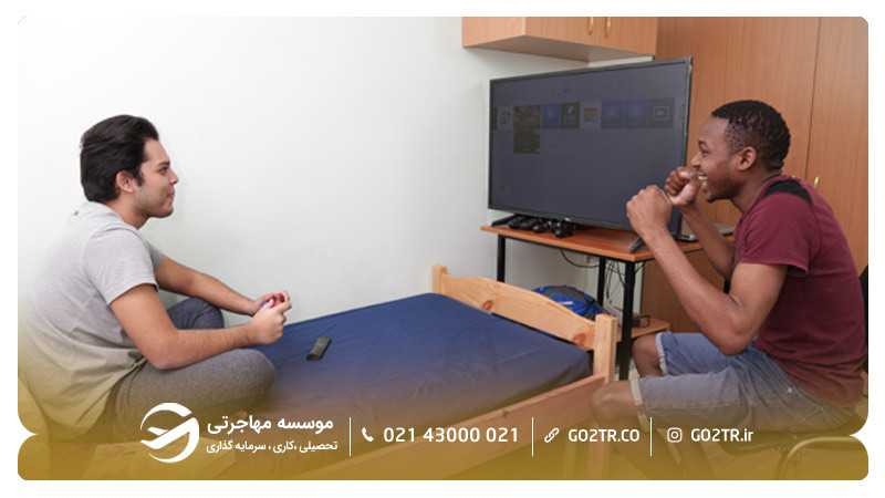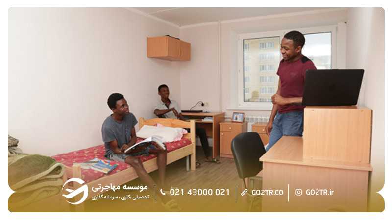 در موسسه هوانوردی مسکو، ۹ ساختمان خوابگاه برای ۷۰۲۰ نفر وجود دارد که به طور کامل برای شستشوی لباس، پخت و پز غذا، نگهداری دوچرخه مجهز هستند. دسترسی به اینترنت وای فای رایگان است. پردیس MAI، چند قدم از ساختمانهای دانشگاه فاصله دارد و در نزدیکی ایستگاههای مترو Schukinskaya، Voikovskaya و Sokol واقع شدهاست.هزینه خوابگاه برای دانشجویان، ۹۰ دلار در هر ماه است.