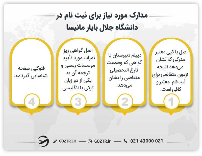 - مدارک مورد نیاز برای ثبت نام در دانشگاه جلال بایار مانیسا