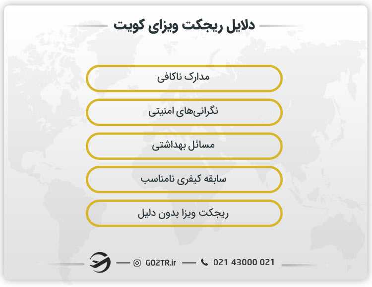 به دلیل سختگیری دولت کویت برای صدور ویزا، درخوست های زیادی در مرحله بررسی ریجکت می شوند که در ادامه رایجترین دلایلی که باعث میشود ویزای کویت شما رد شود را بررسی میکنیم: