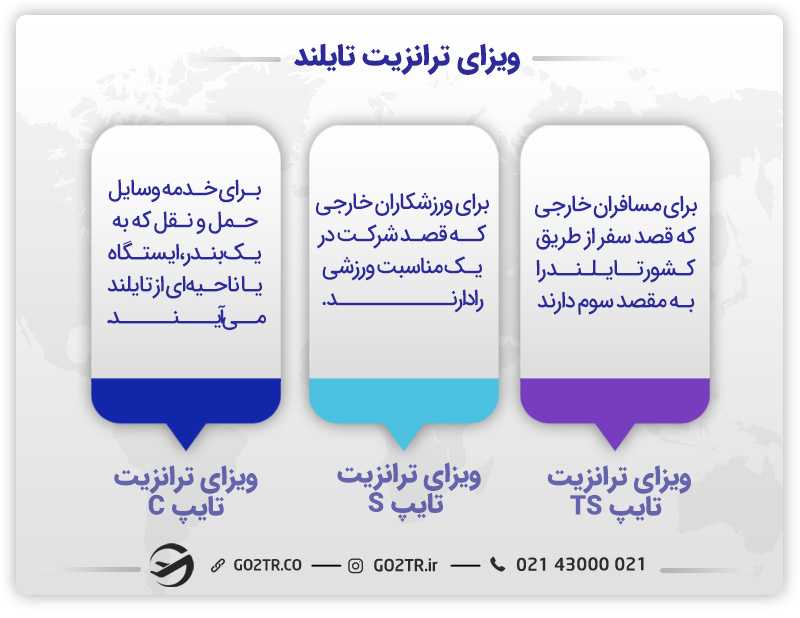 در صورتی که قصد سفر به کشور دیگر از طریق کشور تایلند را داشته باشید، باید ویزای ترانزیت تایلند را دریافت کنید. ویزای ترانزیت تایلند در سه نوع مختلف زیر ارائه میشود. مدارک لازم برای دریافت ویزای ترانزیت تایلند:
