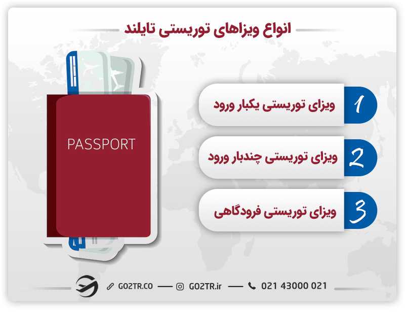 - ویزای توریستی یکبار ورود تایلند: این نوع ویزای توریستی برای ۳ ماه معتبر است. در صورت خروج از تایلند اجازه ورود دوباره به این کشور را ندارید، حتی اگر اعتبار ویزای شما به پایان نرسیده باشد.
